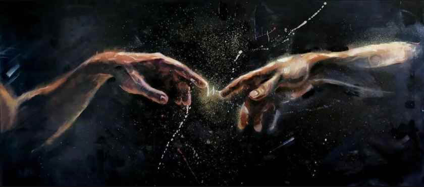 And they saw the right hand of God opened out flat, and stretched out over the whole world; and all creatures were collected in the palm of His right hand. And they saw that He took from the whole mass of the earth one grain of dust, and from the whole nature of water one drop of water, and from all the air which is above one puff of wind, and from the whole nature of fire a little of its heat and warmth.